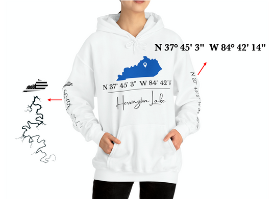 Custom Herrington Lake Coordinates Heavy Blend™ Hooded Sweatshirt w/ Printed Sleeves