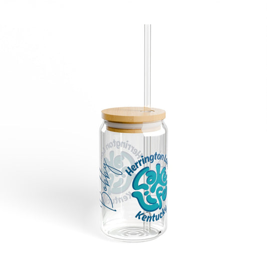 Customized Name Herrington "Lake Life" 2024 16Oz Glass Can Sipper w/ Bamboo Lid and Tritan Straw