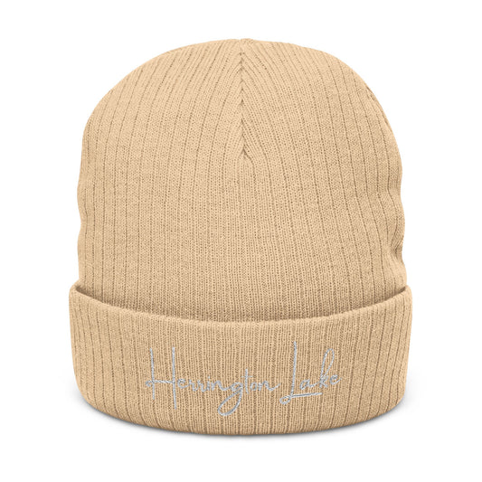 Embroidered Herrington Lake Scipt Logo Ribbed Knit Beanie