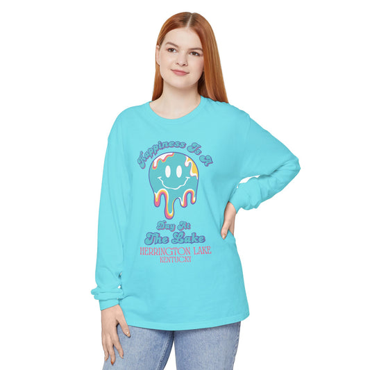 "Happiness is a Day at the Lake" Herrington Lake Garment-Dyed Premium Comfort Colors™ Long Sleeve T-Shirt
