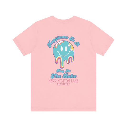 "Happiness Is A Day At The Lake" Double-Sided Print Unisex Jersey Knit Cotton Short Sleeve Tee