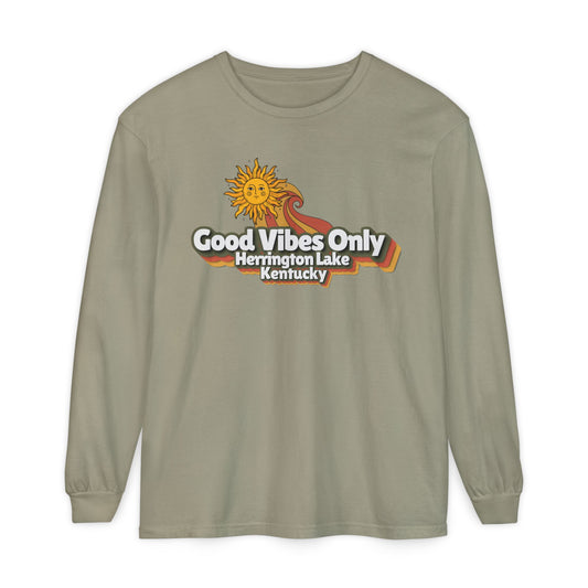 "Good Vibes Only" Herrington Lake Garment-Dyed Premium Comfort Colors™ Long Sleeve T-Shirt