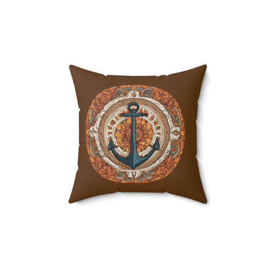 Autumnal Anchor Fall 2024 Mandala Faux Suede Square Pillow (Espresso Brown)