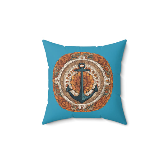 Autumnal Anchor Fall 2024 Mandala Faux Suede Square Pillow (Turquoise)