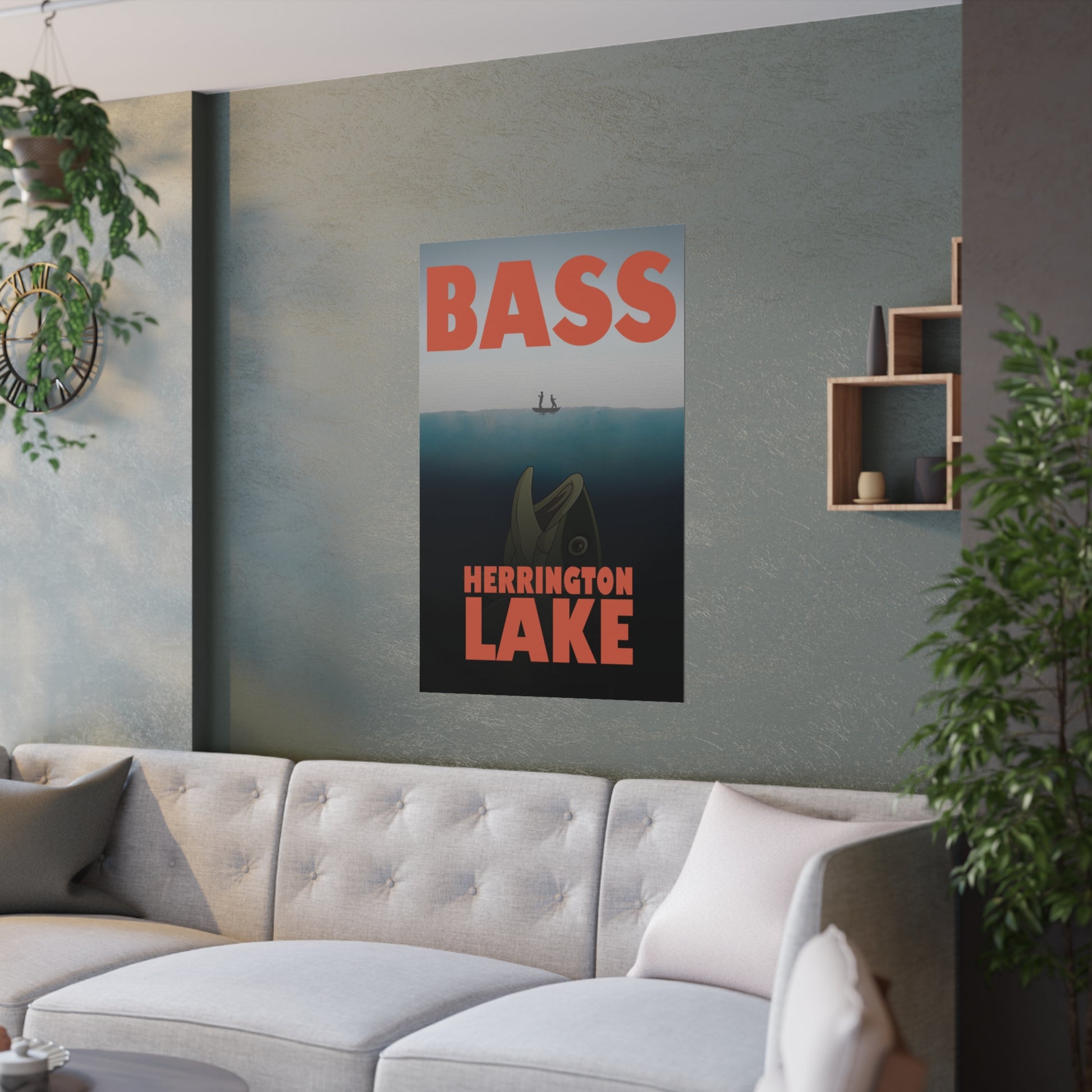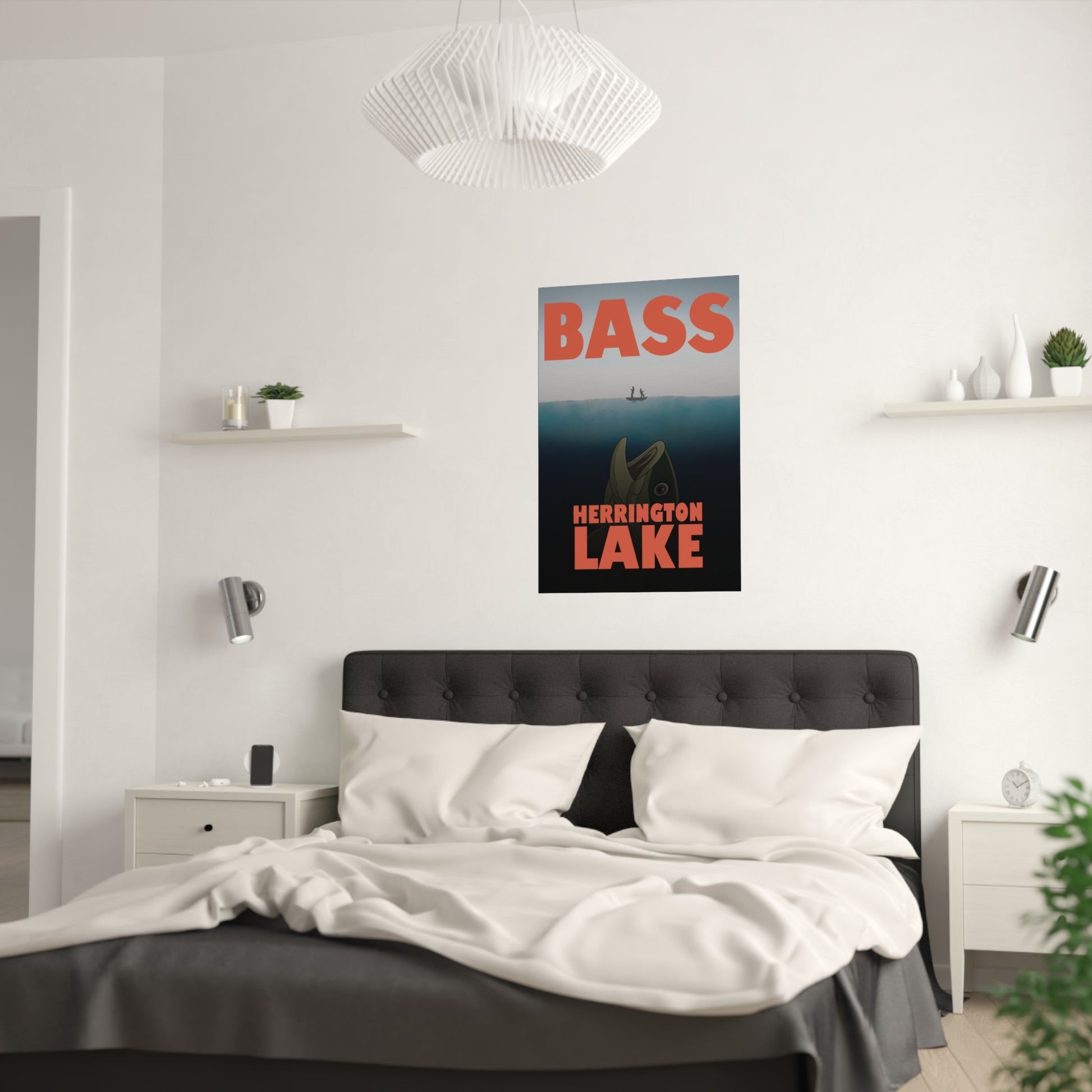 Dive into the depths of Herrington Lake's legend with our exclusive BASS/JAWS poster, a thrilling homage to the iconic blockbuster reimagined through the lens of lakeside adventure.