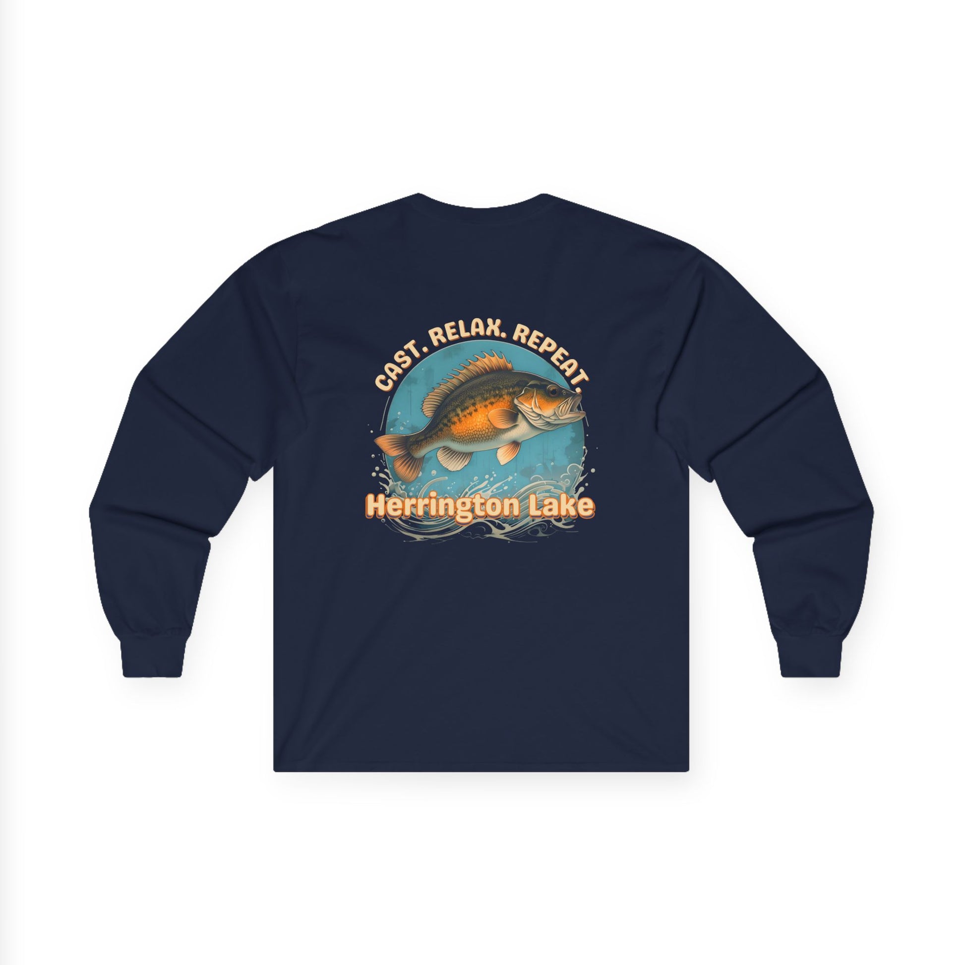Cast. Relax. Repeat. Herrington Lake Unisex Double-Sided Print Ultra Cotton Long Sleeve Tee