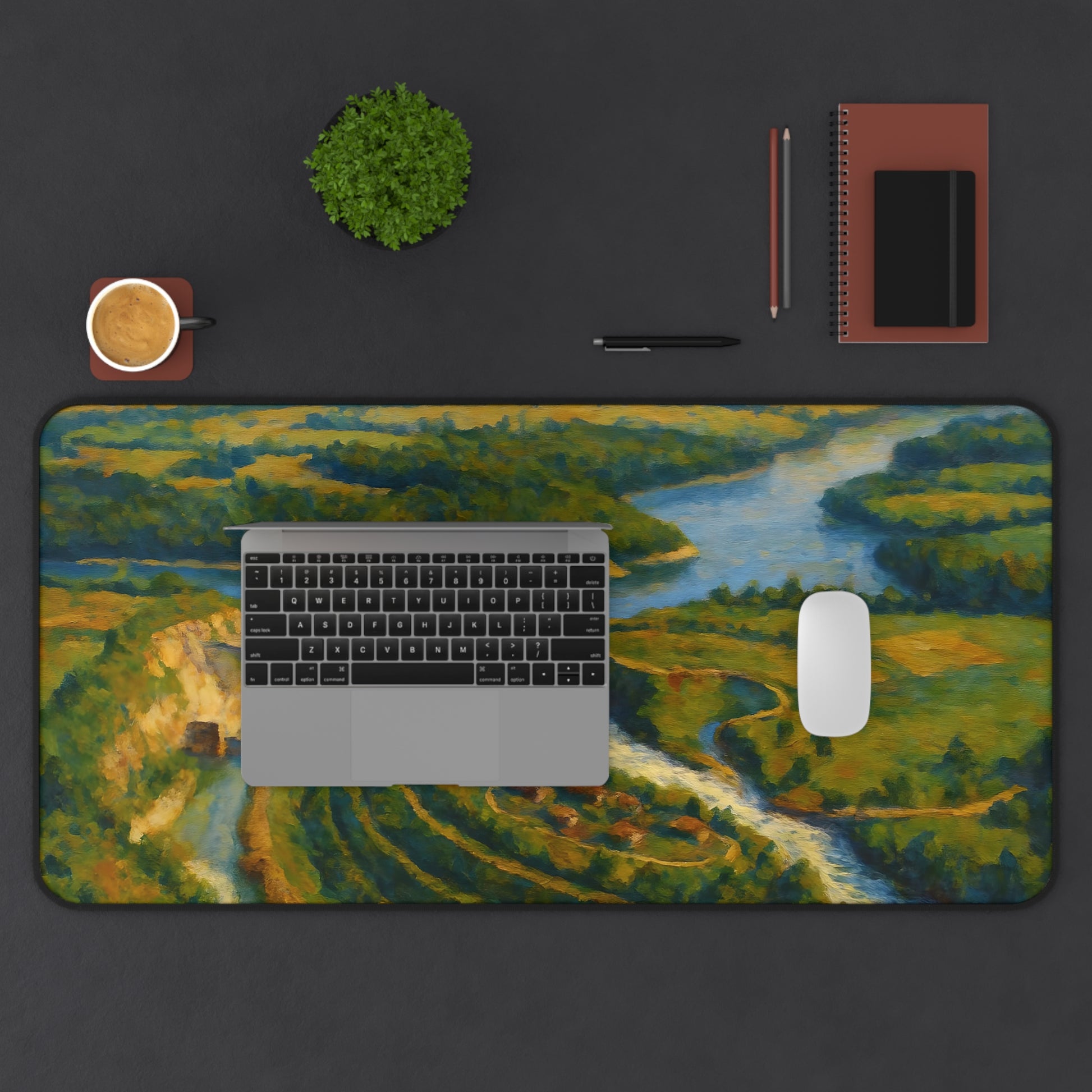 This desk mat is perfect for that extra personal touch at work or in your home office. Step into a timeless view of Herrington Lake's origin with our stunning digital painting, 'Dix Dam: A Painter's Perspective.' Inspired by a unique flyover photograph, this piece transforms the powerful engineering marvel of the Dix Dam into a work of art... Right on your desk.