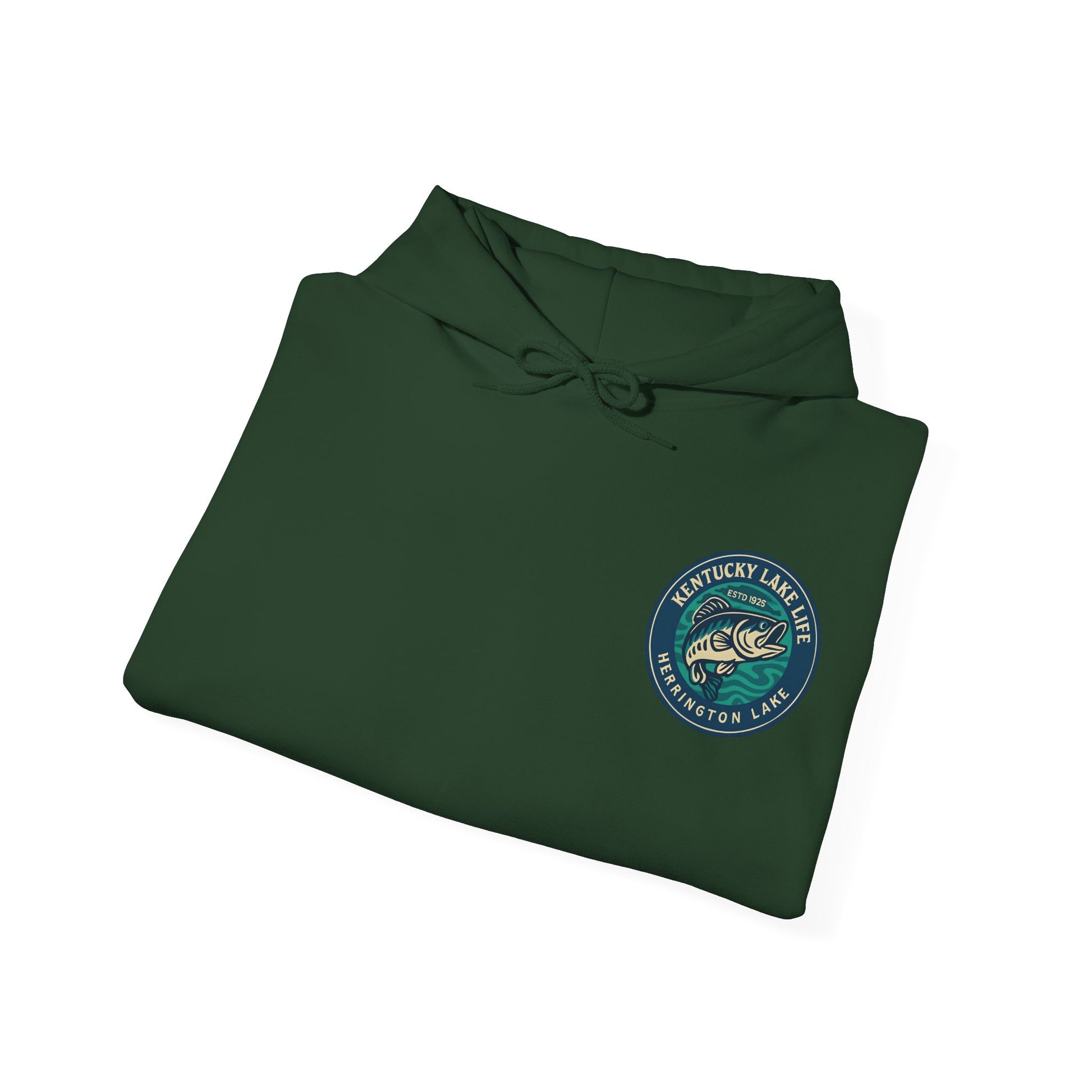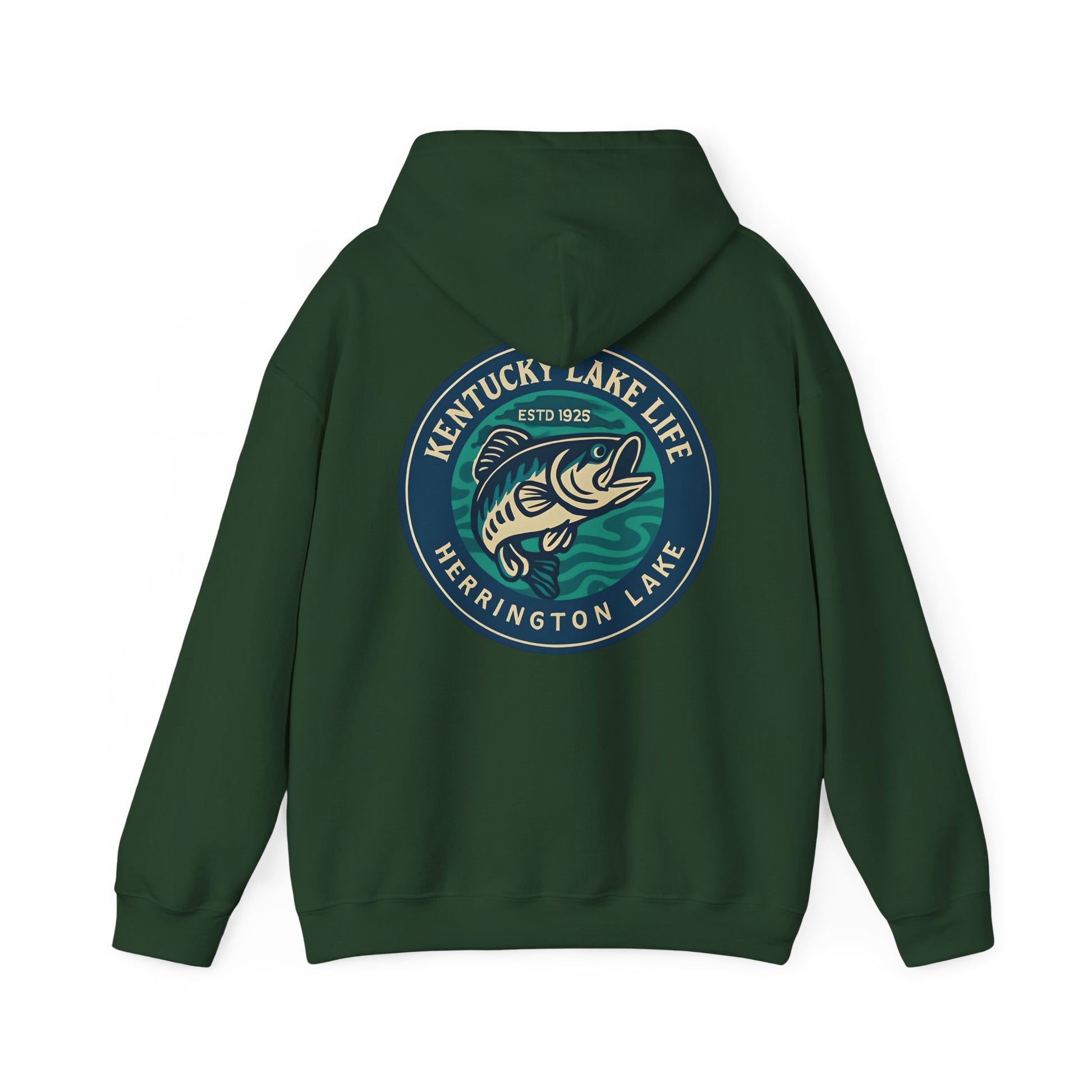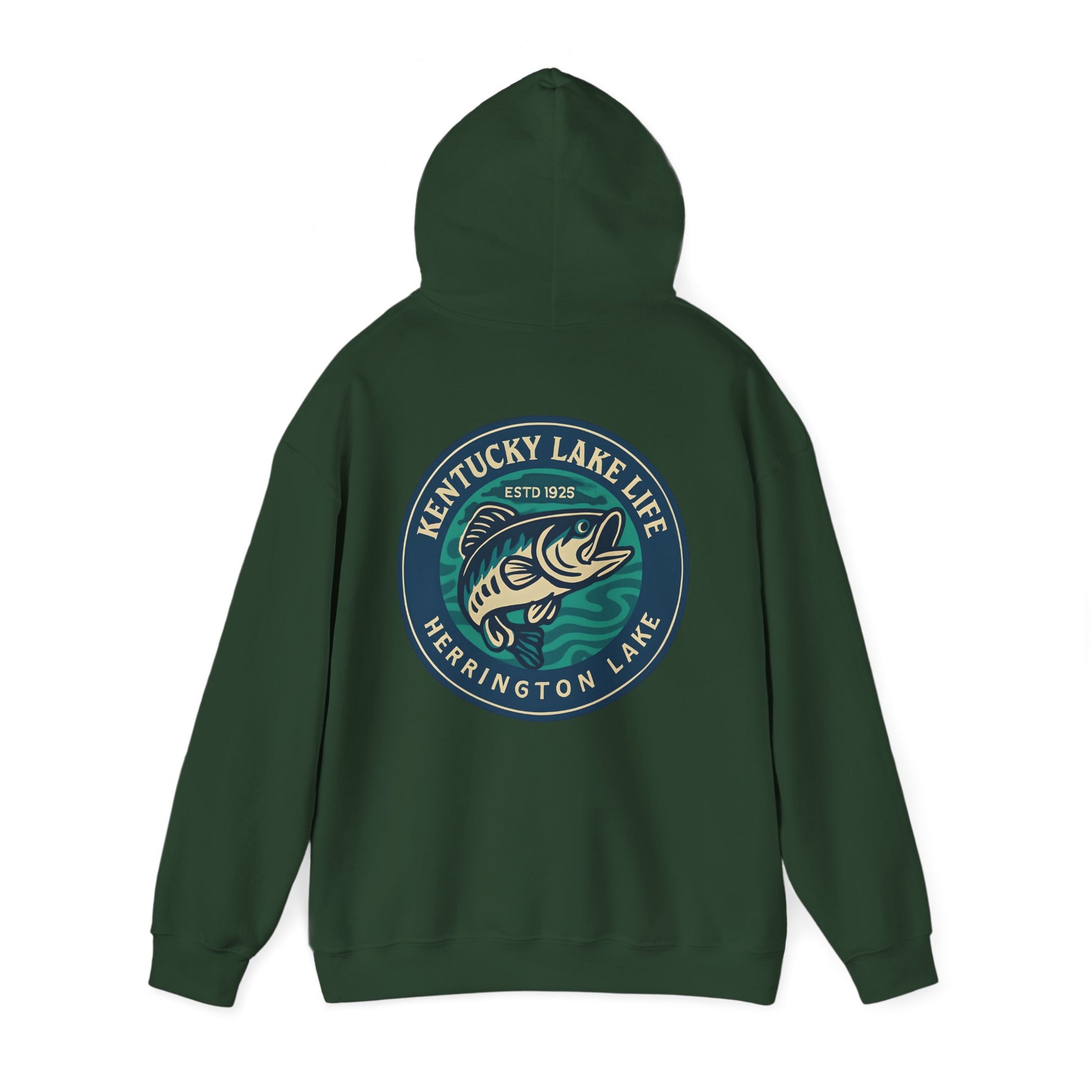 Cast a line back in time with our "Established Lake Life" T-shirt, featuring a vintage-inspired design that celebrates the timeless spirit of Herrington Lake! This isn't just any tee - it's a nod to the enduring charm of our lake living, established in 1925. The classic circular emblem and mid-century illustration is a good wink to our past, showcasing a vibrant fish leaping from swirling waters, encircled by "KENTUCKY LAKE LIFE" and "HERRINGTON LAKE". With its rich blues and greens, this design captures the essence of a perfect day on the water, whether you're chasing the big one or just enjoying the peaceful ripples. Crafted for comfort and style, this hoodie is perfect for sharing your love for Herrington Lake with a touch of classic heritage.