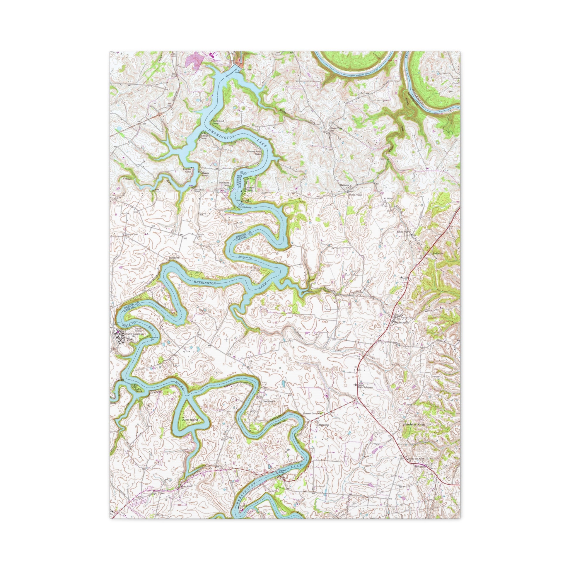 Herrington Lake Topographic Map USGS 1952 Bryantsville/Wilmore Quads Blended Canvas Gallery Wraps - Original Colors