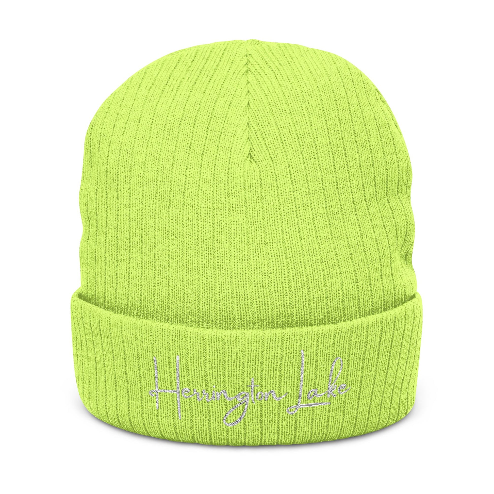 Stay warm and stylish with the Ribbed Knit Beanie! Crafted from a sustainable blend of 50% recycled polyester and 50% acrylic, this cozy beanie features a double-layer knit for added warmth and comfort. Featuring our Herringotn Lake script logo, embroidered in white.