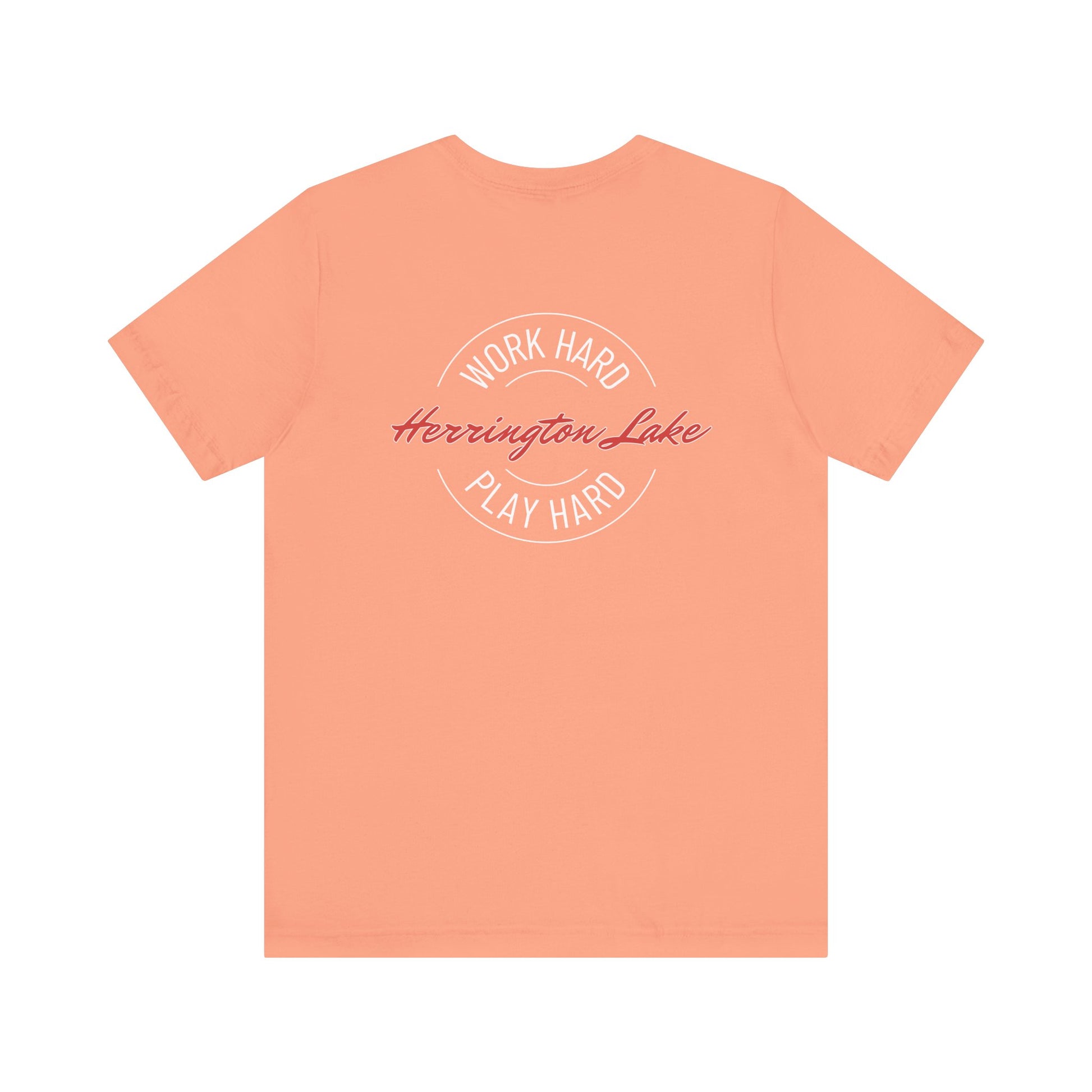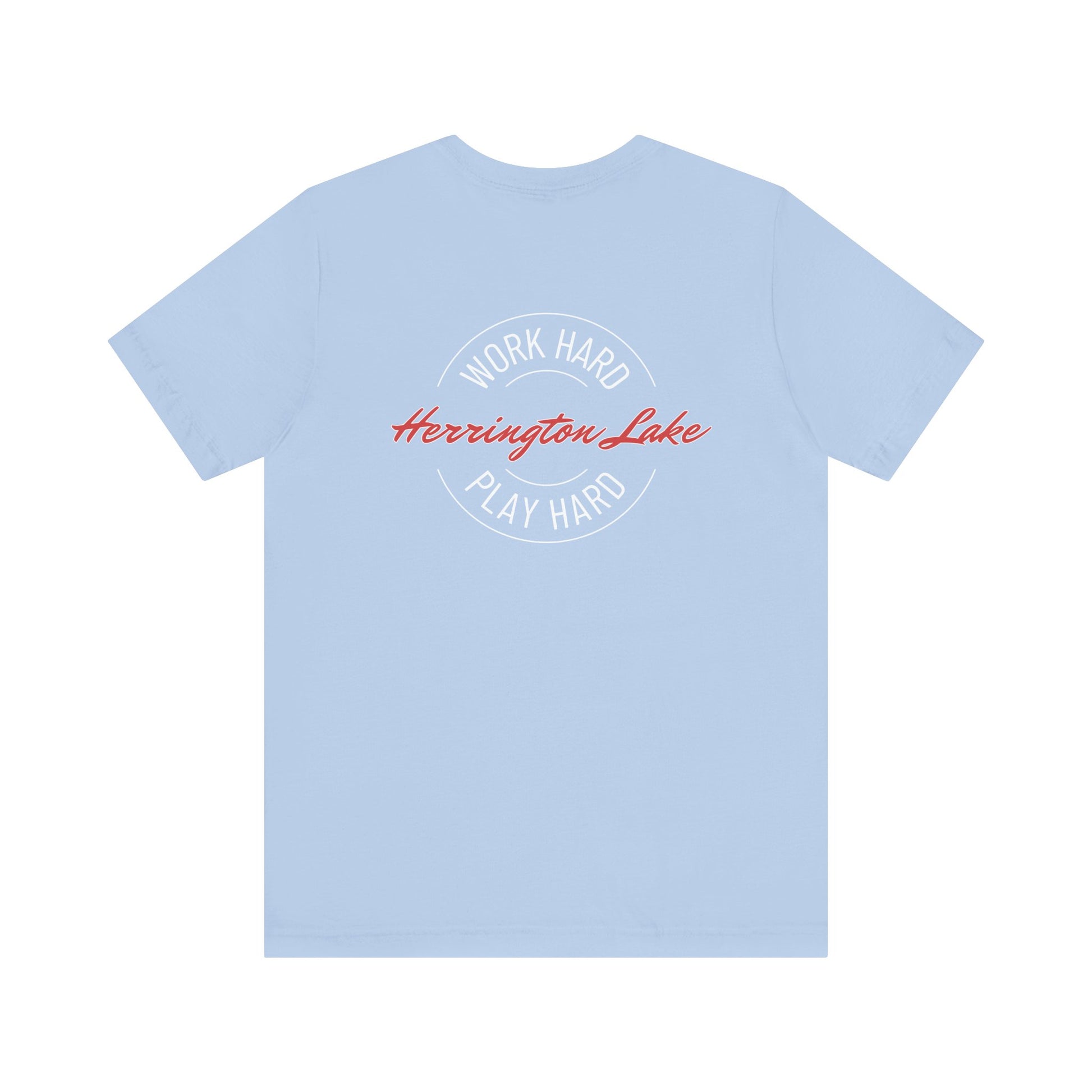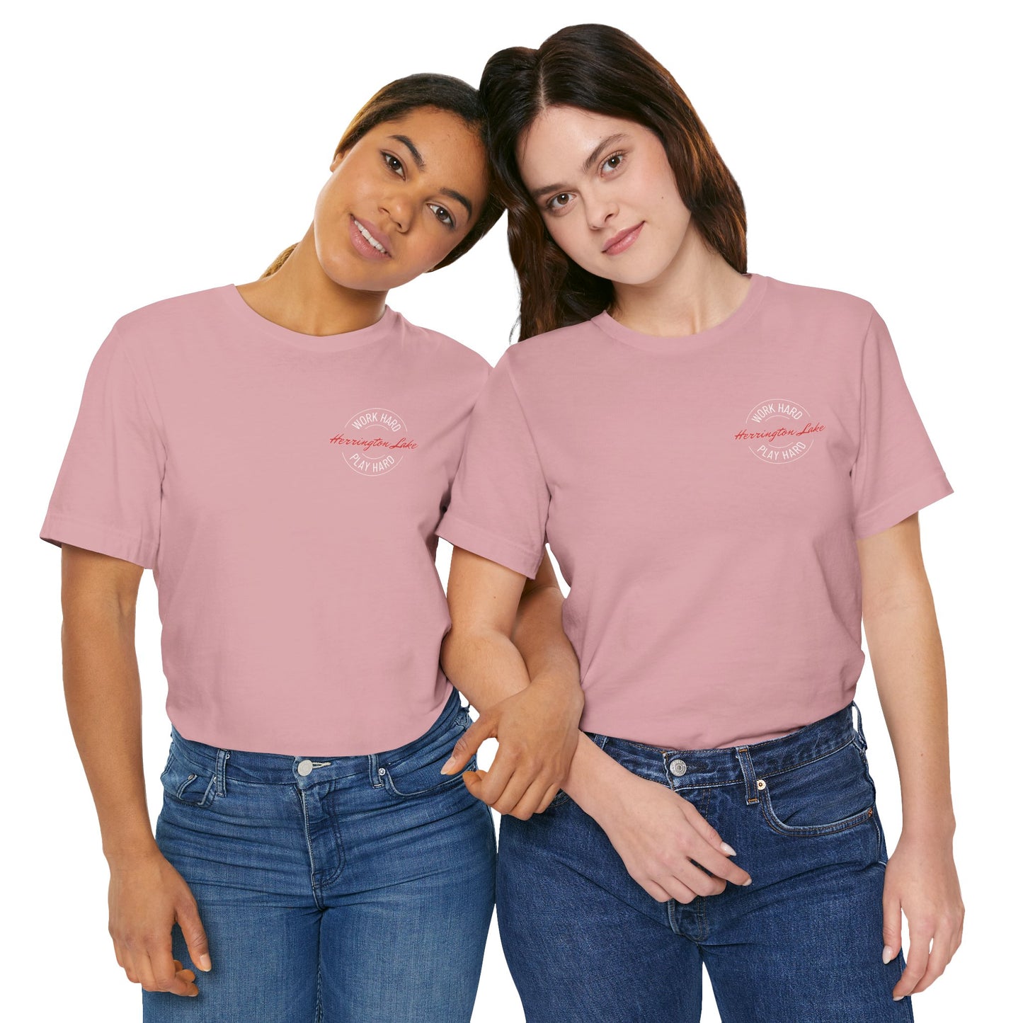 You KNOW how we roll on the lake - we work hard all week and play hard all weekend!This classic unisex jersey short sleeve tee fits like a well-loved favorite and just continues to get softer and more vintage. Soft cotton make us fall in love with it over and over again. These t-shirts have-ribbed knit collars to bolster shaping. The shoulders are tapered for a better fit over time. Dual side seams hold the garment's shape for longer. This is a Double-Sided print, with a small design on the front left lapel, and a full side print on the back.